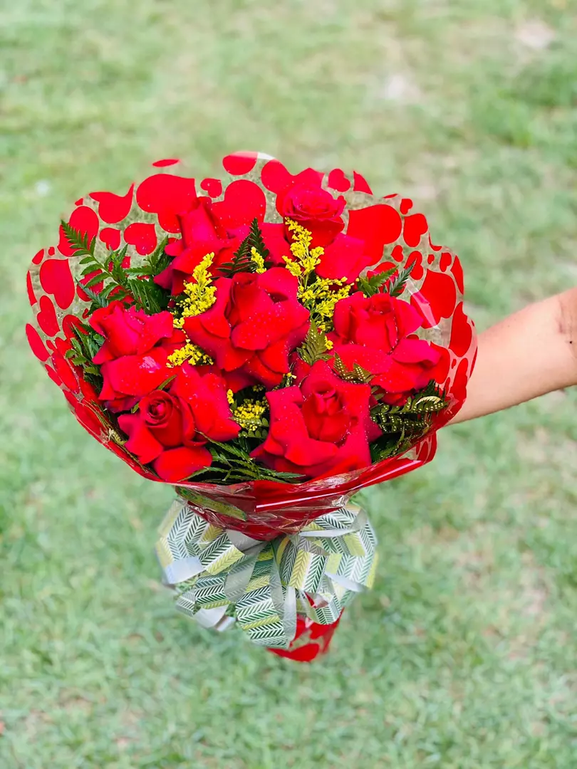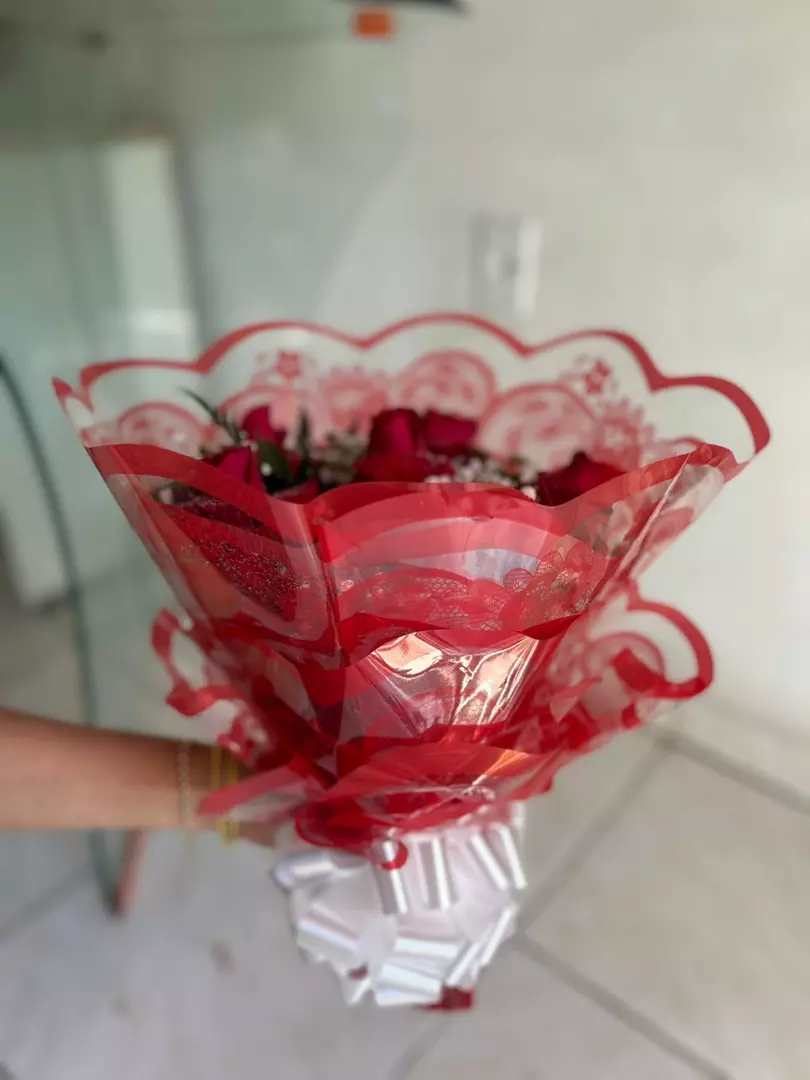 Buque c/ 7 rosas abertas + cartão para mensagem